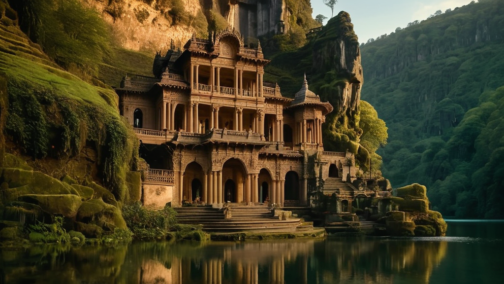 Der Zugang ist verborgen, wie es sich für einen solchen Ort gehört. Wer ihn sucht, kann über einen geheimen Pfad durch den Berg selbst gelangen, durch Gänge, die sich wie Wurzeln durch das Gestein ziehen. Oder aber man nähert sich von außen, über einen stillen, klaren See. Ein Boot bringt jene hinüber, die eingeladen sind, und gleitet durch Nebel und Spiegelungen in das Halbdunkel eines verborgenen Eingangs. Dort öffnet sich der Fels, nicht schroff, sondern wie eine Tür, die weiß, wann sie sich öffnen soll.