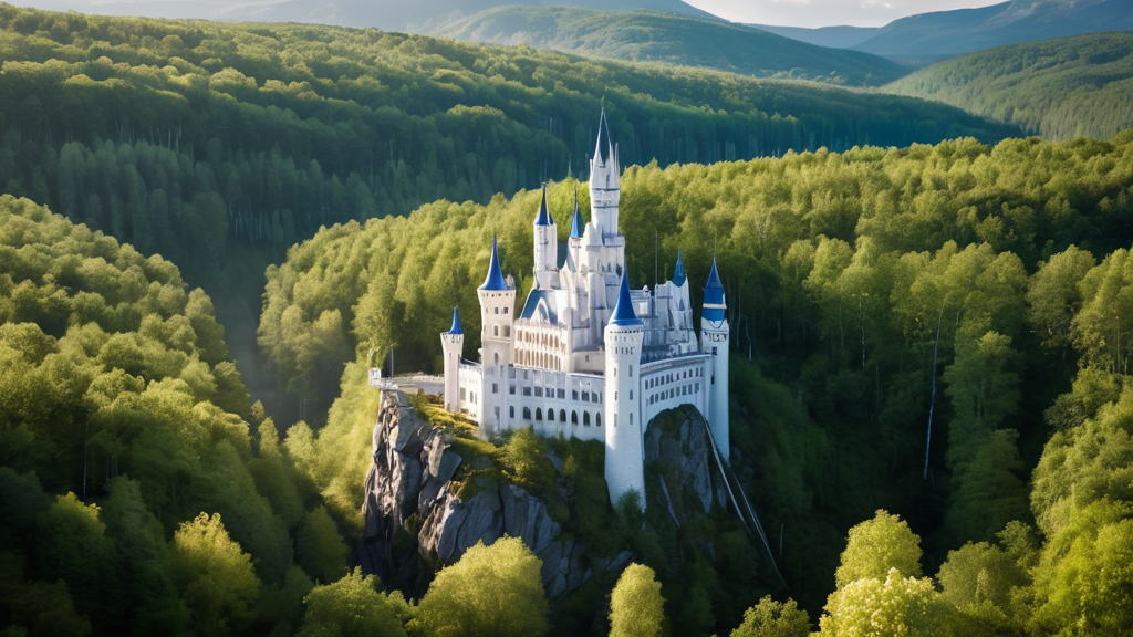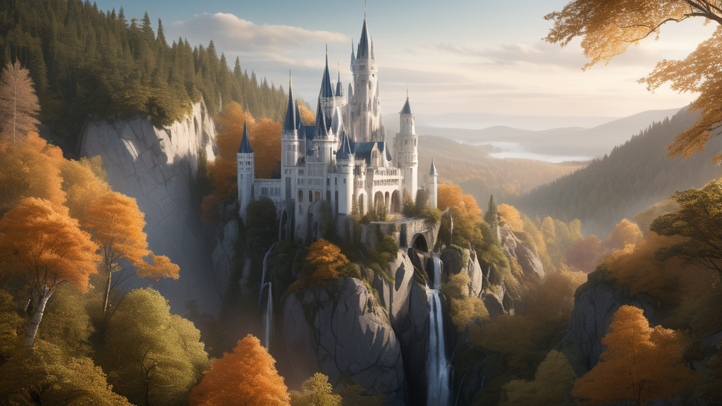 Erbaut wurde er von den Elfen, in jenen Tagen, als Zeit und Wille noch flossen wie eins. Ihre Hände, leicht wie Wind und stark wie Wurzeln, erschufen Mauern, die weißer sind als Schnee im Licht der Morgensterne. Die Dächer tragen das Blau des ersten Himmels nach dem Winter, ein Leuchten, das sich gegen das Weiß erhebt wie ein Lied. Zwischen diesen Farben liegt die Stille der Wahrheit – nichts Aufdringliches, nichts Prunkvolles, sondern reine, aufrichtige Schönheit.